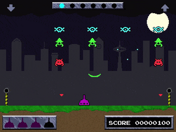INVASION VERSUS also features a single-player arcade mode in which the player assumes the role of the Earth team and faces off against wave after wave of aliens, aiming for a high score.